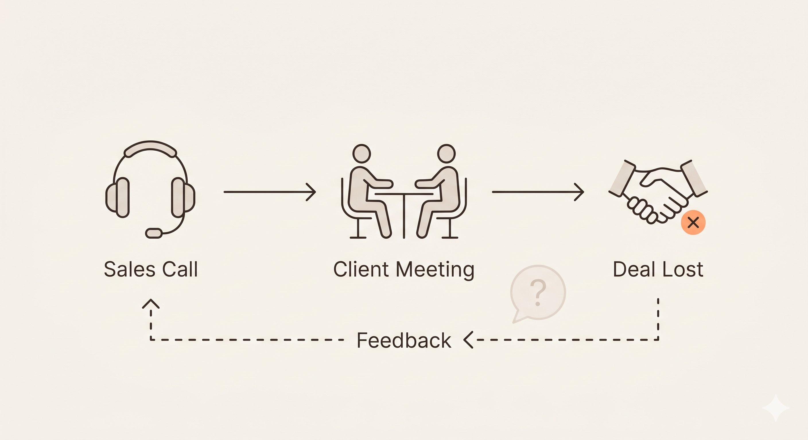 You walk out of a meeting thinking it went well. The deal goes cold. No signal, no coaching, no review — just silence. Without a feedback loop, you repeat the same mistakes on every call.